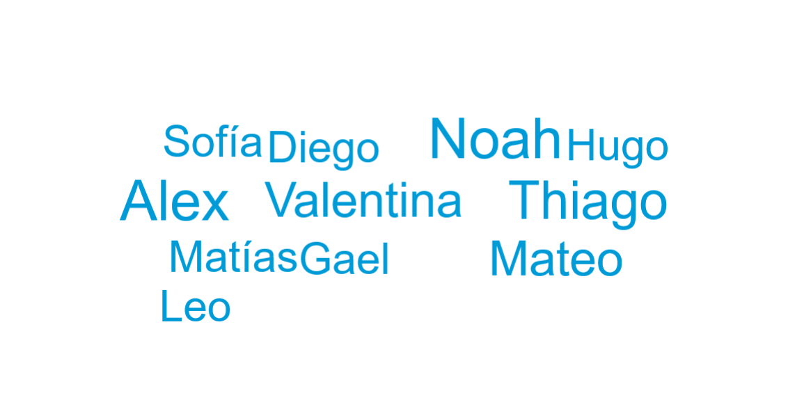 Thiago, Mateo y Gael figuran a continuación entre los nombres más frecuentes de niños, mientras que en niñas destaca Sofía.