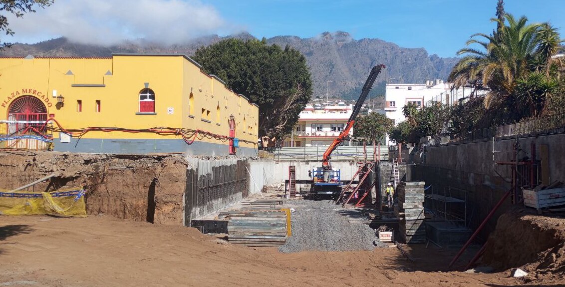 Obras de construcción del nuevo parking subterráneo del Mercado Municipal de Los Llanos. EL PERIÓDICO DE LA PALMA