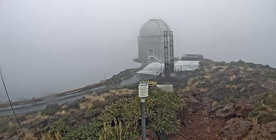 Imagen del Roque de los Muchachos tomada esta tarde por la webcam del Nordic Optical Telescope (NOT).