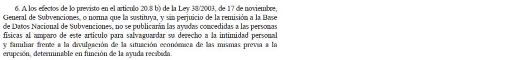 Artículo 10.5 de la orden del Gobierno de Canarias que regula la concesión directa de ayudas a afectados.